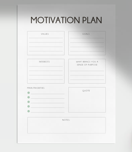 - Motivation Plan: Ontwikkel strategieën om jezelf gemotiveerd te houden en je doelen te bereiken.
